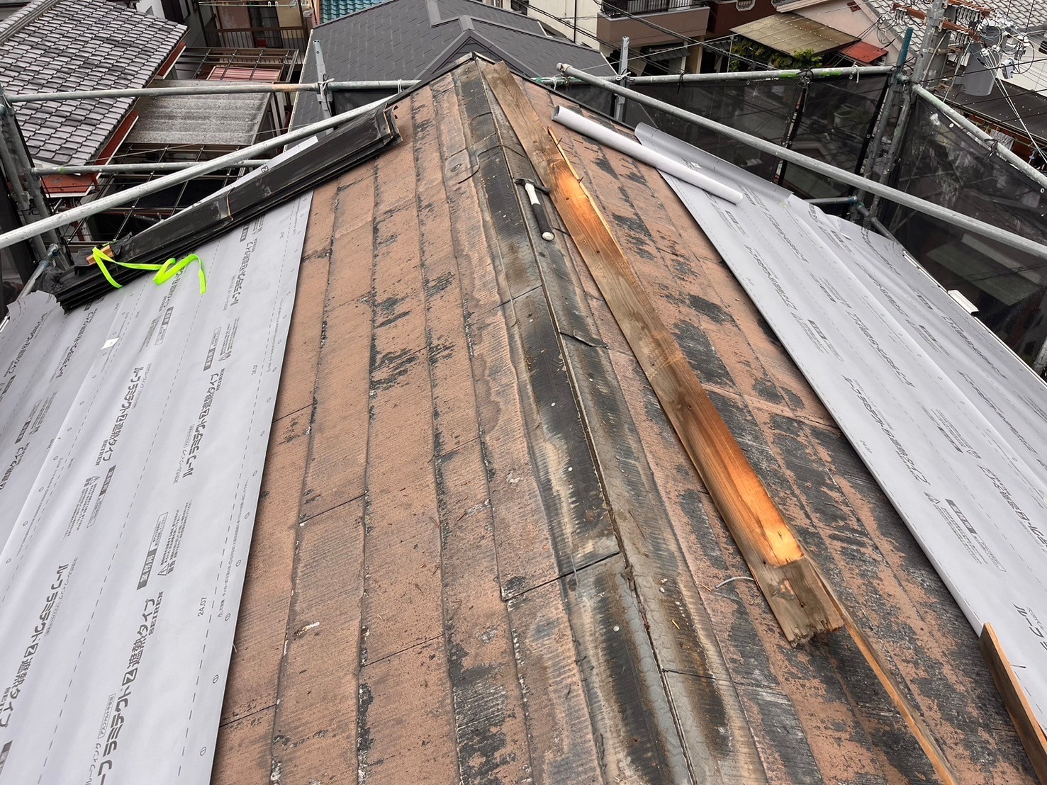 カバー工法の採用: 費用を抑えたいとのことなので、既存のスレート屋根を完全に撤去するのではなく、上からスーパーガルベストを重ねるカバー工法を採用しました。これにより廃材処理費用と工期を大幅に削減できます。