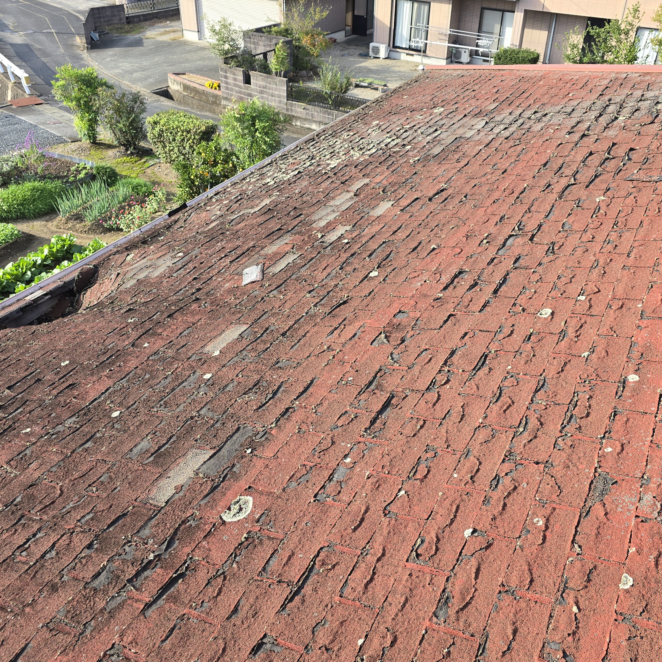 経年劣化: 屋根材のひび割れや色褪せ、大きな穴が目立ち、雨漏りのリスクがありました。